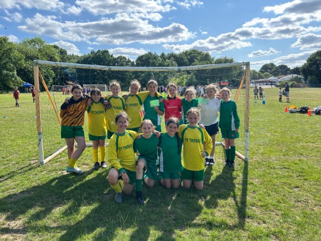 To the right are the two girls' football teams who played in the local schools tournament at St Helen's in June 2024, into which we have entered at least one team every year since it began.